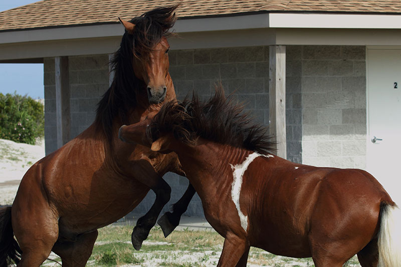 Ces chevaux nagent à travers le canal Assateague jusqu'à l'Île Chincoteague, où une vente aux enchères a lieu. C'est ainsi que son nom se transforme en Chincoteague.