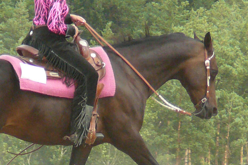 équitation western à généralement le réflexe de répondre immédiatement à une demande, ce qui permet de toujours pouvoir monter avec les rênes détendue, voire pendantes.