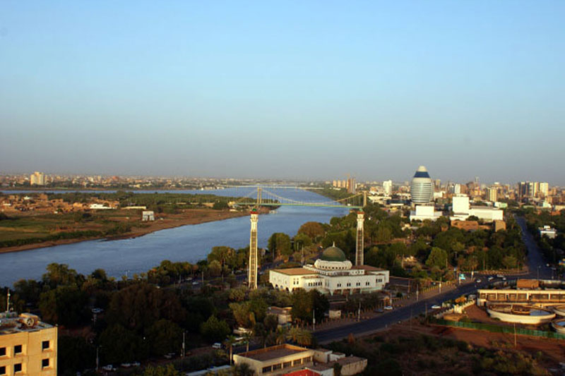 L'État de Khartoum se trouve au confluent du Nil Blanc, avec sa blancheur éclatante, et du Nil Bleu, avec sa couleur marron alluviale, là où les deux fleuves s'unissent pour former le Fleuve du Nil.