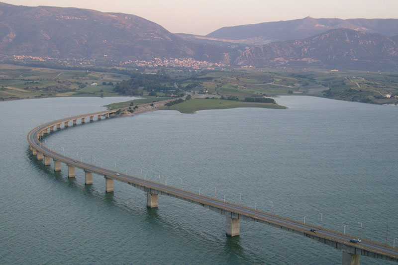 Le Fleuve Aliakmon coule dans les montagnes de Gramos dans le nord de la Grèce, près de la frontière avec l'Albanie et dans son cours supérieur, tournant au sud est près de Kastoria, puis autour des montagnes de Vourinos, pour finir dans le golfe Thermaïque.