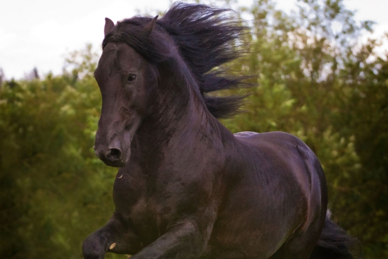 Le Frison descend d'une ancienne race de chevaux qui peuplait l'Ouest de la Province de la Frise, dont il tire son nom, il y a près de 3000 ans, là où furent découverts les restes d'un cheval similaire à sang froid.