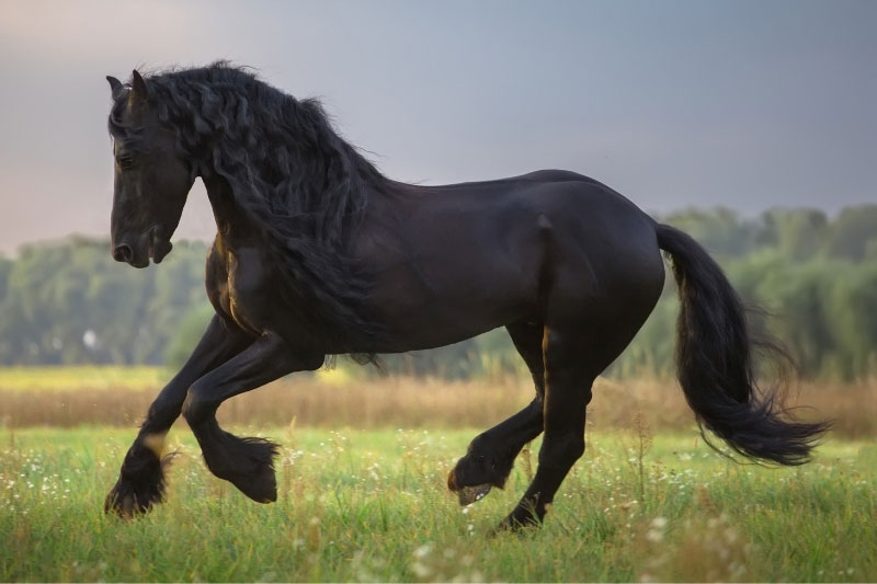 Le Frison descend d'une ancienne race de chevaux qui peuplait l'Ouest de la Province de la Frise, dont il tire son nom, il y a près de 3000 ans, là où furent découverts les restes d'un cheval similaire à sang froid.