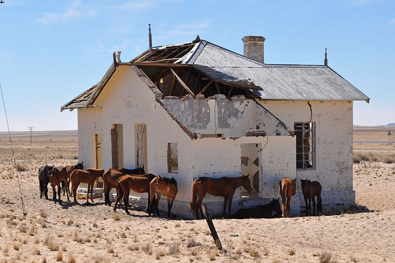 Cette ville abandonnée, située au sud ouest de la Namibie en Afrique Australe, est liée à l'élevage du Cheval de Namibie.
