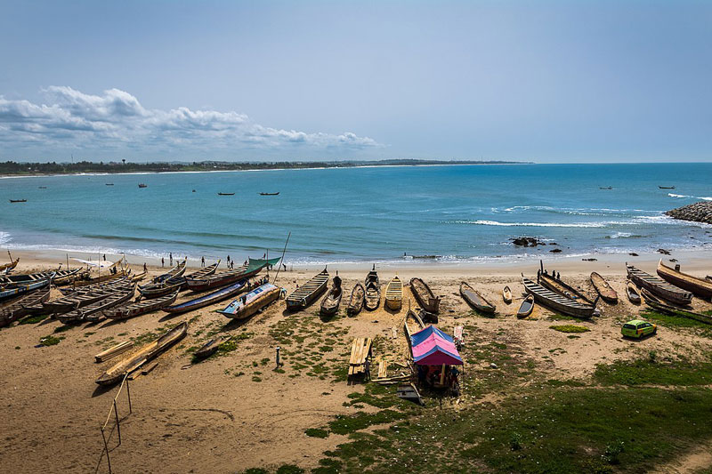 Situé sur le golfe de Guinée, le Ghana possède un climat chaud grâce à sa proximité avec l'équateur. Le pays est composé de plaines, de cascades, de collines, de rivières et du plus grand lac artificiel du monde.