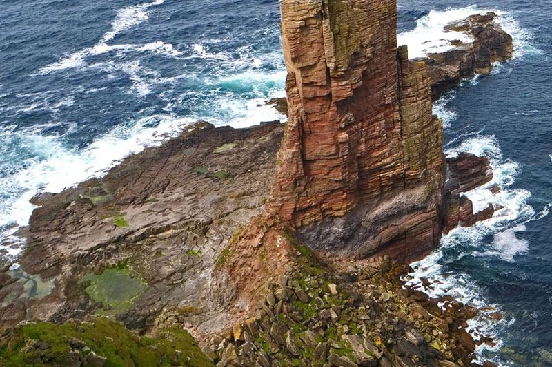 Les Îles Orcades, îles continentales qui ont une altitude comprise entre 0 et 481 mètres au dessus du niveau de la mer, abritent peu de reliefs, à l'exception de quelques collines de grès en forte élévation, dont Rousay et Hoy où se trouve le point le plus haut et des falaises escarpées sur certaines côtes occidentales.