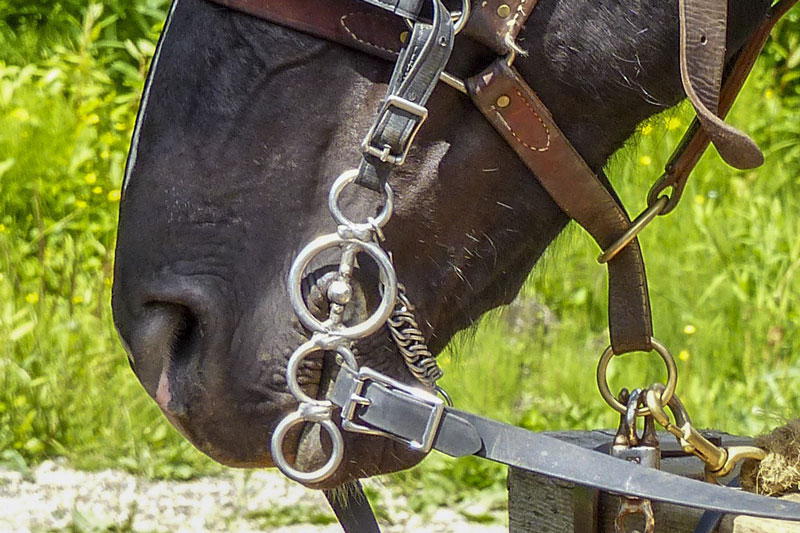 Le mors Pessoa avec une forme courbe est plus confortable pour le cheval qu'un mors à barre droite.