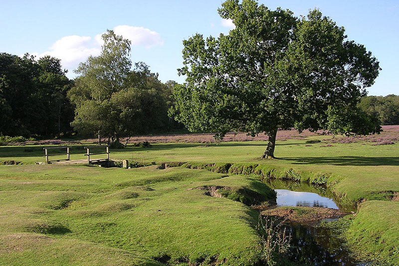 Le New Forest, région naturelle qui a une altitude maximum de 129 mètres au dessus du niveau de la mer, s'étend le long de trois rivières au sud, celle de Lymington, de Beaulieu et d'Avon, du ruisseau Latchmore, au centre d'un bassin sédimentaire connu sous le nom de bassin du Hampshire, et sur le Parc National de New Forest.