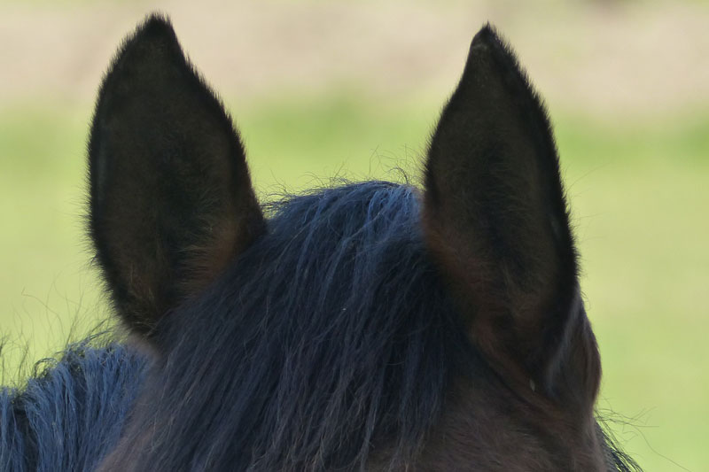 Considérées comme un miroir de l'état psychologique du cheval, les oreilles sont placées au-dessus des tempes, de part et d'autre de la nuque.