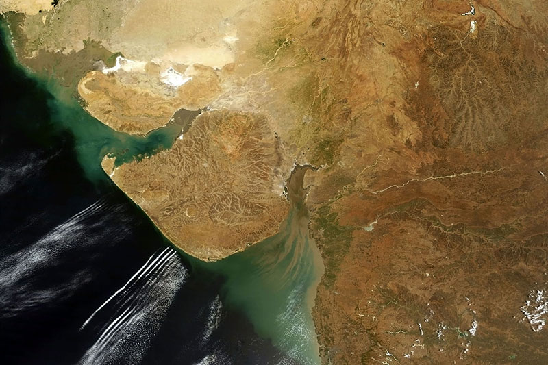 La Péninsule de Kâthiâwar, péninsule qui a une altitude maximum de 1117 mètres au dessus du niveau de la mer, possède plusieurs parcs nationaux, comme le Parc national de Velavadar sur le golfe de Cambay et le Parc national marin sur le golfe de Kutch près de Jamnagar.