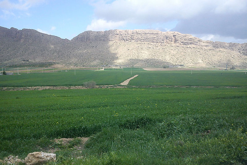 La Province de Fars s'étend sur des hauts plateaux montagneux et le long des Monts Zagros au nord ouest au sud est de la province, la divisant en deux zones géographiques distinctes.
