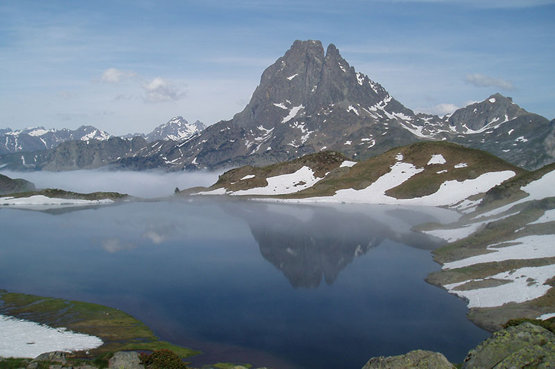 Les Pyrénées, montagnes qui ont une altitude maximum de 3404 mètres au dessus du niveau de la mer, s'étendent à travers les régions françaises de Nouvelle Aquitaine et d'Occitanie au nord, les communautés autonomes espagnoles du Pays basque, de Navarre, d'Aragon et de Catalogne, au sud et sur la totalité d'Andorre.