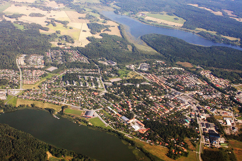 Le territoire s'étale sur 3,48 kilomètres carrés, pour une population de 5221 habitants, selon le recensement de l'année 2021. Stockholm, la capitale du pays, est à une distance, à vol d'oiseau, de 50 kilomètres de son centre géographique.