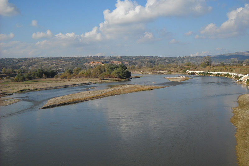 La Rivière Axios, rivière qui a une altitude comprise entre 0 et 683 mètres au dessus du niveau de la mer, débute sa course à Vrutok, à quelques kilomètres au sud-ouest de Gostivar en Macédoine du Nord, pour continuer en traversant la frontière grecque près de Gevgelija, avant de se jeter dans la Mer Égée, à l'ouest de Thessalonique.
