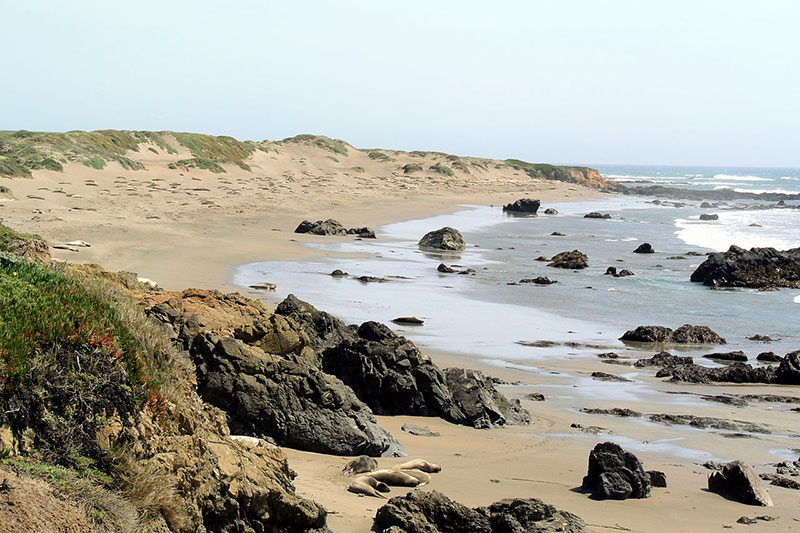 San Simeon, ville qui a une altitude maximum de 978 mètres au dessus du niveau de la mer, s'étend sur une baie, un ancien point d'expédition important du XIXème siècle possédant des quais successifs et un lieu abritant un grand nombre d'éléphant du Nord rookery, plus connu sous le nom Piedras Blancas rookery.