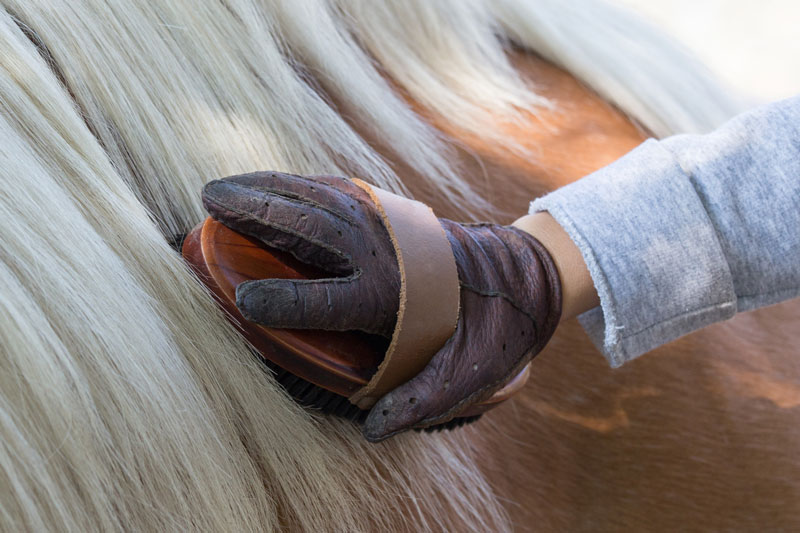Lorsqu'un cheval possède une crinière « tous crins », il faut procéder au démêlage avec une étrille finlandaise, ou un bouchon, sans tirer sur les noeuds.