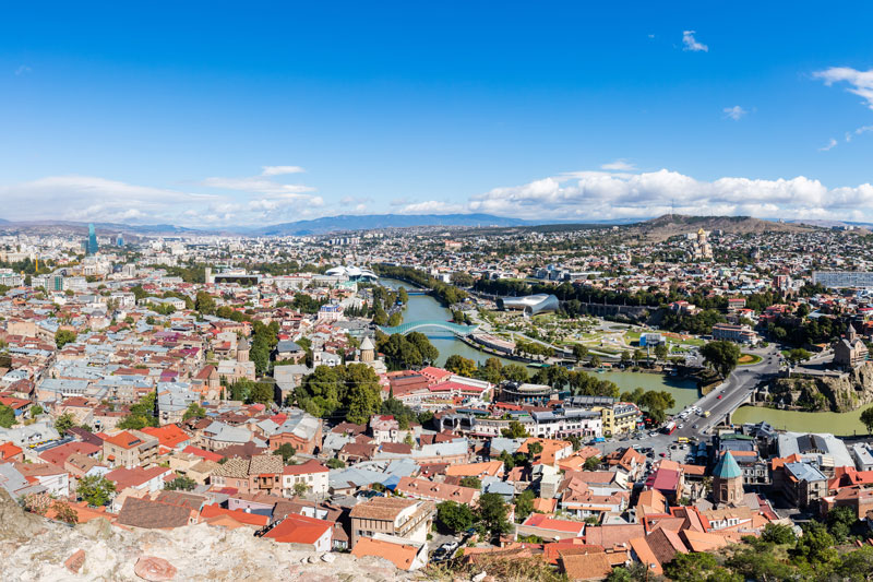 Tbilissi, ville qui a une altitude comprise entre 380 et 770 mètres au dessus du niveau de la mer, est sur les rives du fleuve Koura.