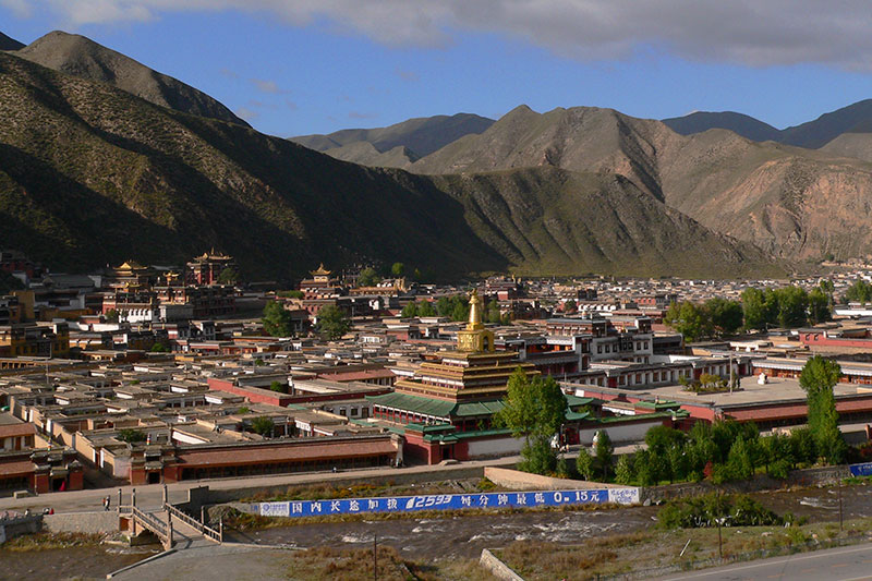 Le Xian de Xiahe, xian qui a une altitude comprise entre 2 960 et 2960 mètres au dessus du niveau de la mer, comprend le Monastère de Lanbrang, l'un des plus grands monastères bouddhistes tibétains.